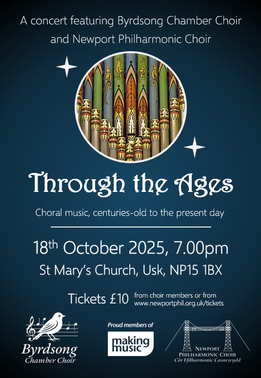 Nos Da is a beautiful, nostalgic lullaby written by Newport composer, Mai Jones, and Welsh poet, Idwall Jones, in the 1940s. Familiar local scenes from the day are revisited in the twilight, a concept that has inspired many children's bedtime stories. The lyrics have a gentle sway as they bid a fond goodnight to the listener, while the harmonies evoke post-wartime Britain. Given Mai's successful radio career, it is easy to imaging it being played on late radio broadcasts at the time, and it was the perfect way to end our evening of music alongside Byrdsong, in our concert on 18th October.